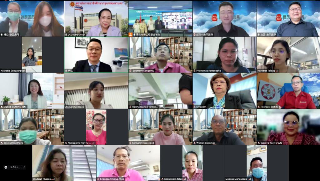 10月25日,我校立项的教育部教育援外项目“泰国智能制造领域人才专业核心能力提升培训”顺利开班。泰国教育部职业教育委员会曼谷职业教育中心(IVEB)主任冲普努·波邦松、副主任乌马彭·猜扎棱,重庆市教育委员会国际合作与交流处处长李斌,我校副校长幸昆仑、智能制造与汽车学院院长叶勇、国际交流与合作发展处副处长刘影,唐风国际教育集团业务总监庄雷等中外领导和嘉宾出席开班仪式。仪式由我校培训与继续教育学院院长莫绍强主持。