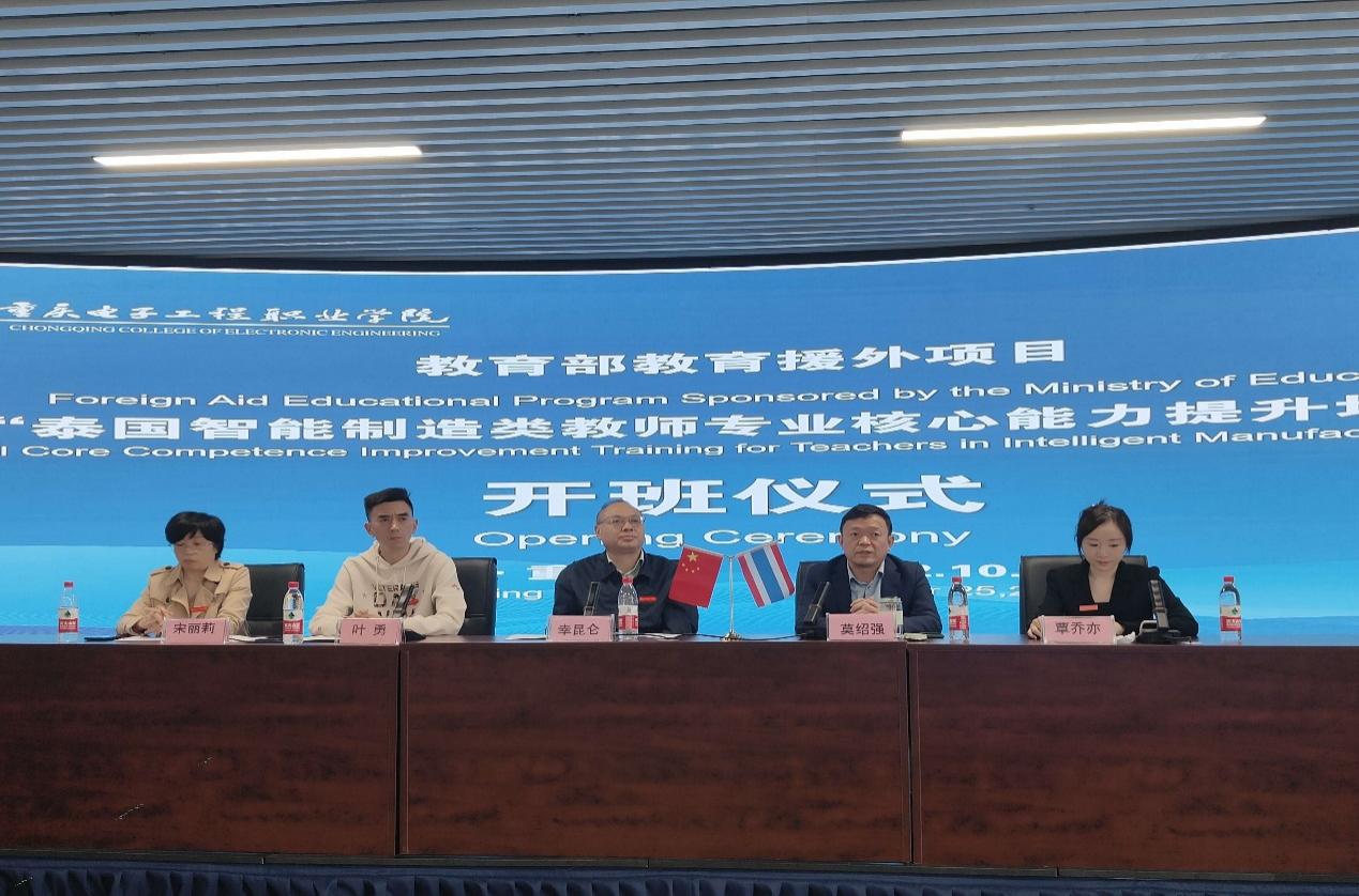 重庆市教育委员会国际合作与交流处处长李斌在讲话中指出,此次重庆电子工程职业学院泰国教育援外项目的立项和开班,体现教育部对重电教育教学质量和国际化人才培养办学实力的高度认可。项目契合了我市深化建设陆海新通道职业教育合作的发展需求,为重电职业教育国际化的发展提供了良好的契机。希望此次项目能够切实帮助泰国专业教师提升职业核心能力,与泰方分享重庆在智能制造领域的有益经验。并寄语参训学员认真学习职业技能,感悟中国文化,使本项目真正成为一座连接中泰两国民心相通的桥梁。