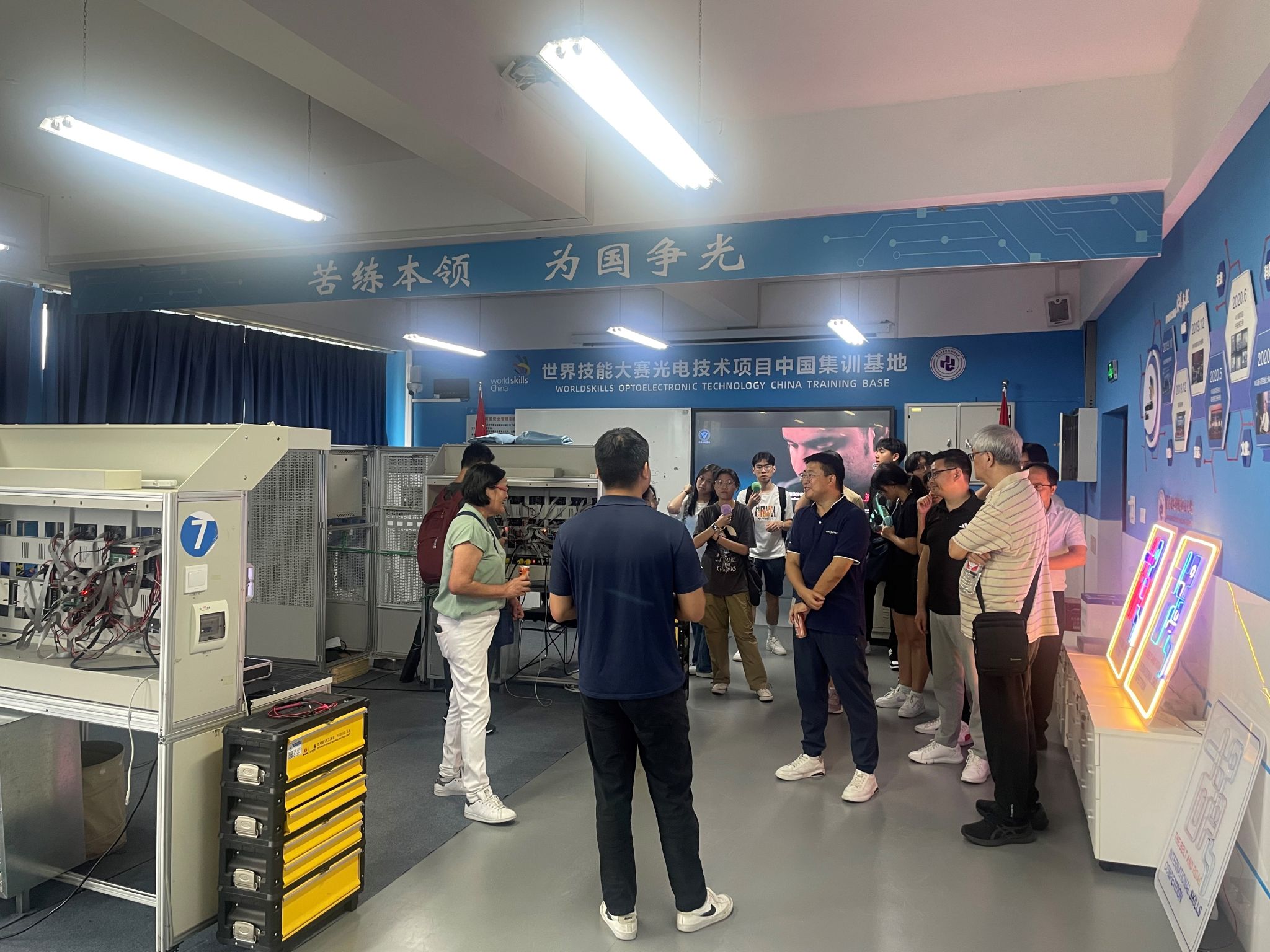 来访嘉宾先后参观了我校陈良国家级大师工作室、硅光中心及世赛光电技术项目中国主基地等场所,全方位领略了我校在电子信息类专业领域的办学风采、卓越成就、创新人才培养模式、高质量实训教学及雄厚师资力量。