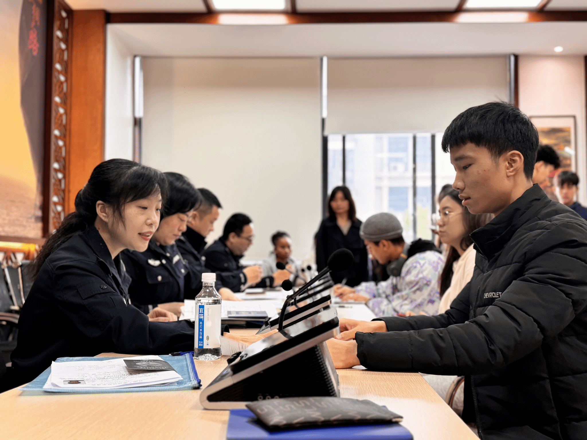 本次会议在我校通识教育与国际学院知行楼B408丝路会议室开展。宣讲环节,李军政警官讲解了《中华人民共和国出境入境管理法》《中华人民共和国外国人入境出境管理条例》等相关法律法规,强调了国际学生在华期间应遵守的法律规定,以及遇到紧急事件时的处理办法;为留学生解析了签证办理过程中的注意事项和常见问题,帮助他们理清签证办理的重点和难点。