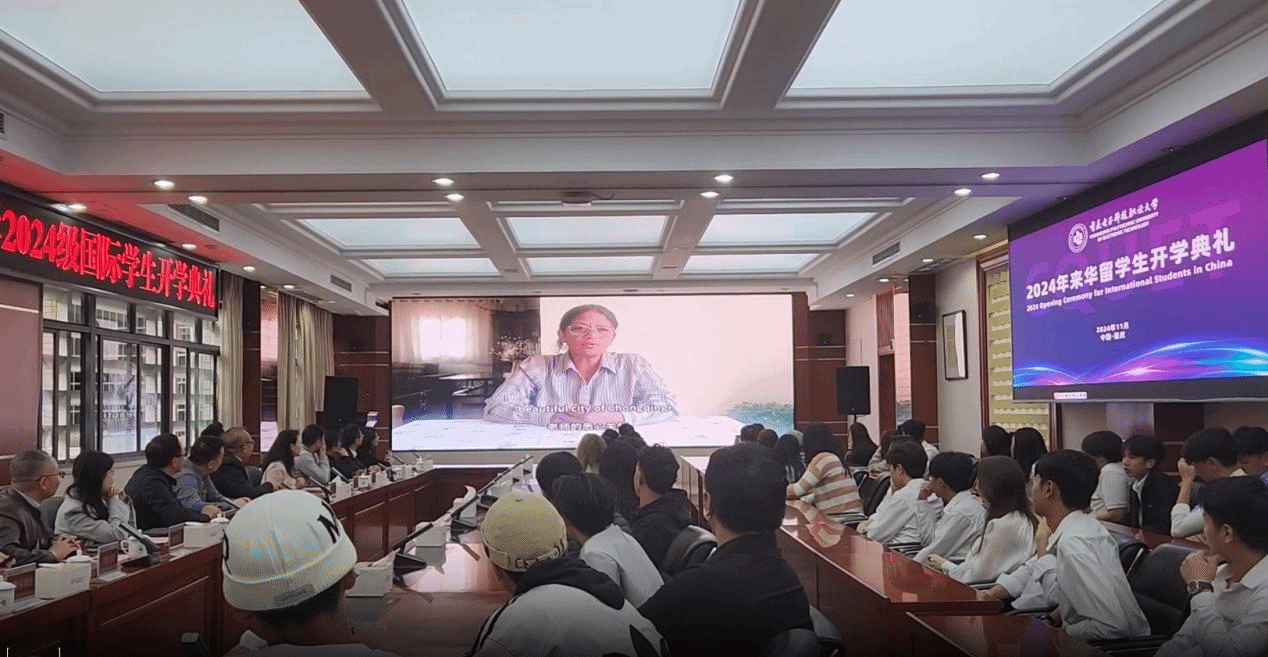 2024年学校面向俄罗斯、摩洛哥、马达加斯加、塔吉克斯坦、哈萨克斯坦、乌兹别克斯坦、蒙古、老挝、泰国、越南等十一个国家招收了45名来华留学生,81名短期团组学生。11月1日上午,我校2024年来华留学生开学典礼在博润厅举行。校长聂强、副校长幸昆仑,以及党委宣传部、党委学工部、国际交流与合作发展处、教务处、安全管理处、通识教育与国际学院等二级单位负责人、教师代表参加典礼。仪式由国际交流与合作发展处副处长刘影主持。