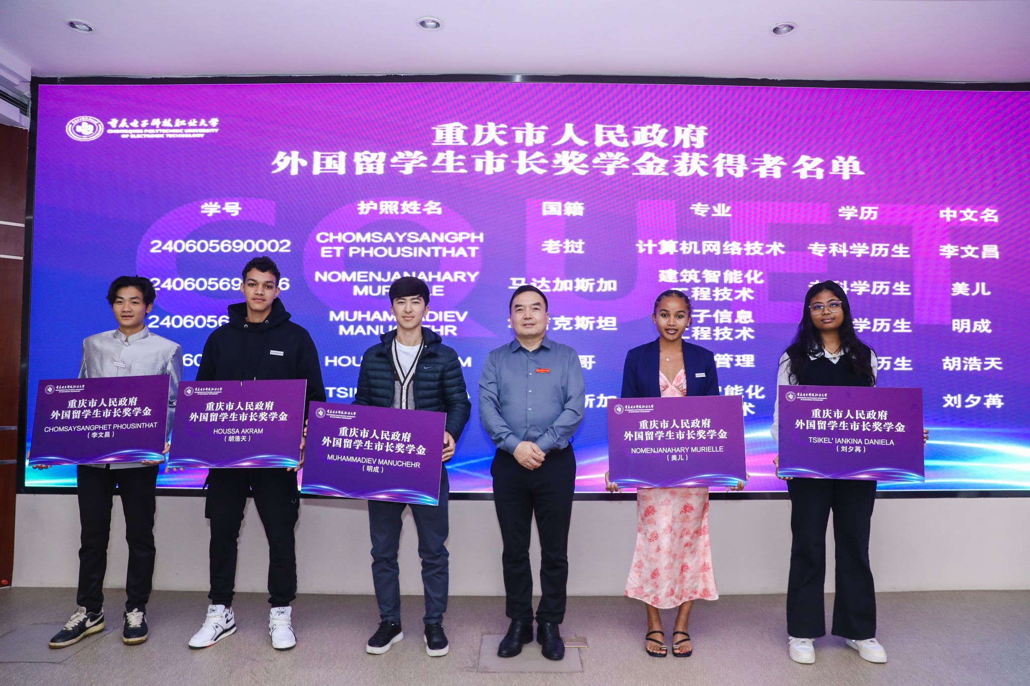 典礼上,聂强校长为优秀留学生代表颁发了重庆市人民政府外国留学生市长奖学金,幸昆仑副校长为留学生代表佩戴校徽。重电2024级留学生们正式开启他们在中国的学习和生活之旅。