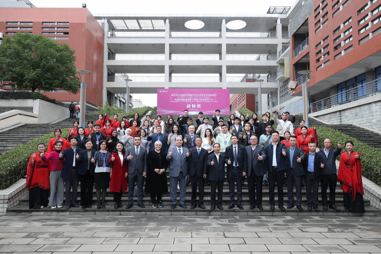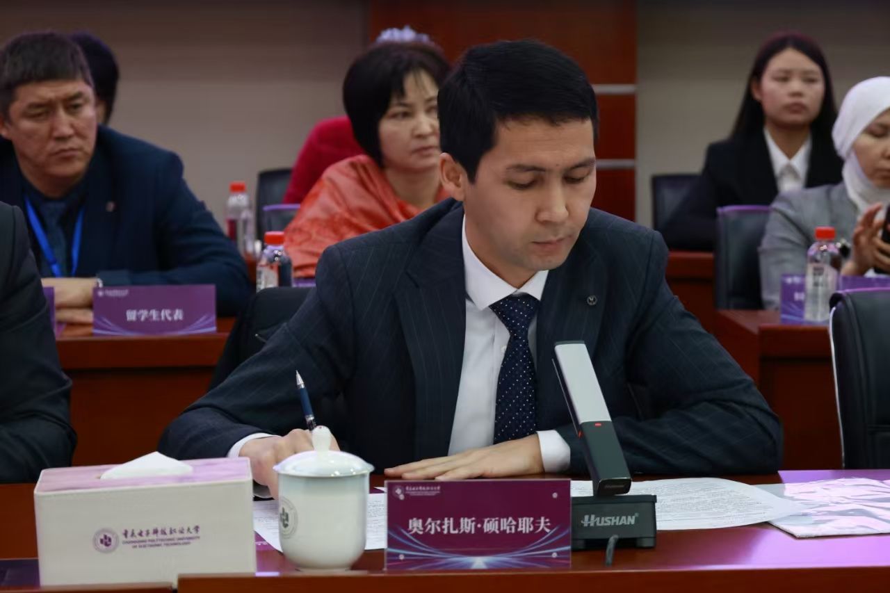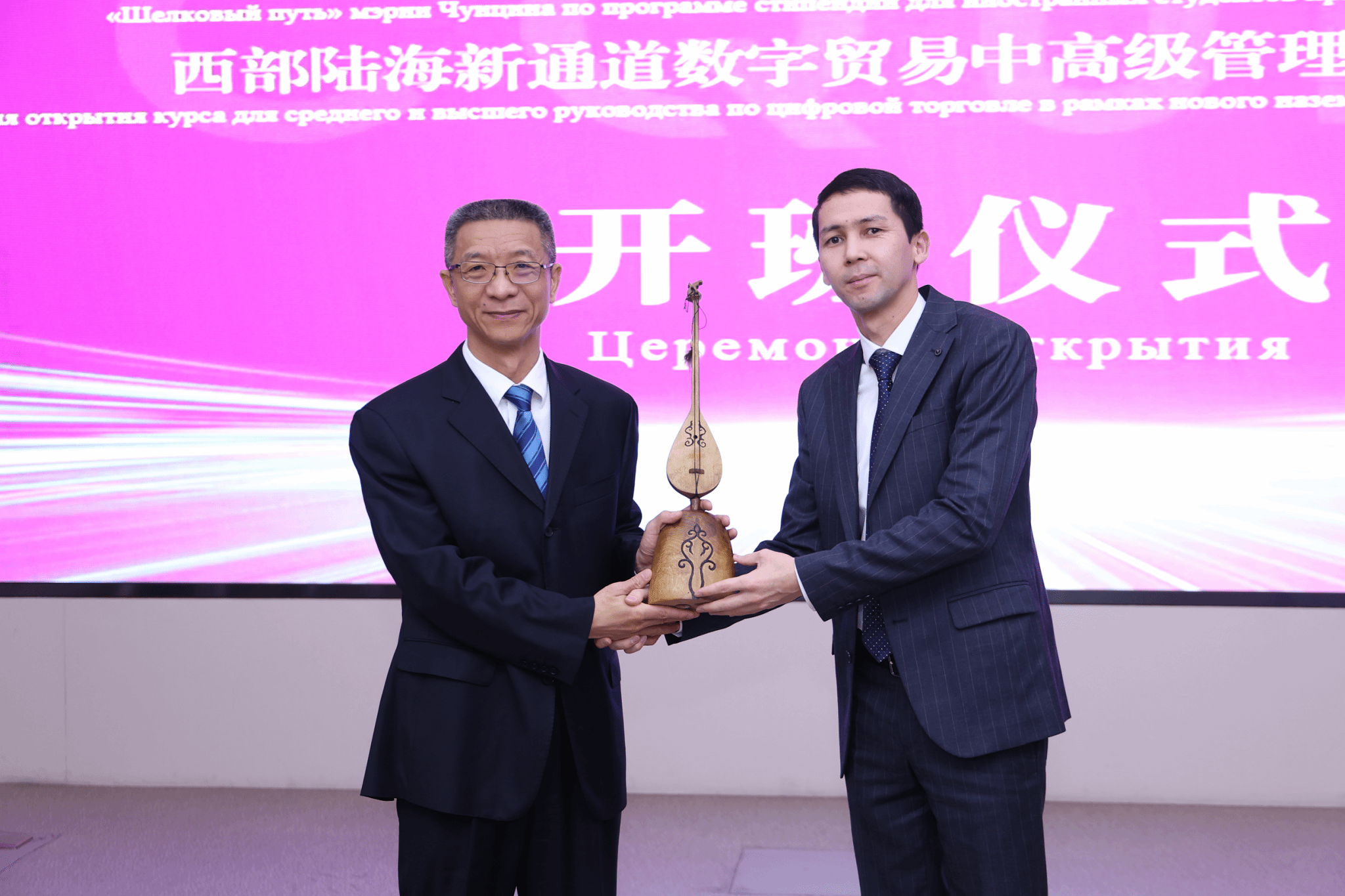 11月18日上午,重庆市人民政府外国留学生市长奖学金丝路项目“西部陆海新通道数字贸易中高级管理人员研修班”在博润厅举行开班仪式。哈萨克斯坦共和国科学和高等教育部学生社会化和德育管理局局长奥尔扎斯、重庆市教育国际交流协会会长邓睿、重庆电子科技职业大学党委书记张伟等出席了开班仪式,来自各国的参训学员、学校相关部门负责人参加了仪式,开班仪式由副校长幸昆仑主持。