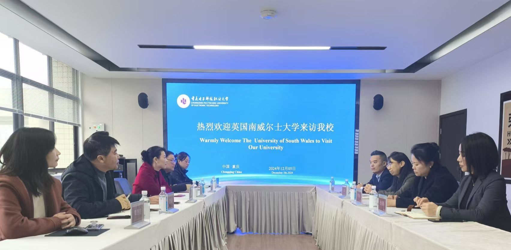 12月5日上午,英国南威尔士大学海外合作项目负责人王坚,江裕(重庆)教育科技有限公司董事长李雪梅、副总经理任德民、项目总监张丽梅一行到我校交流。国际交流与合作发展处处长刘宏宇、副处长刘影、科长覃乔亦,电子与物联网副院长夏西泉、物联网系副主任贺涛等参与交流。