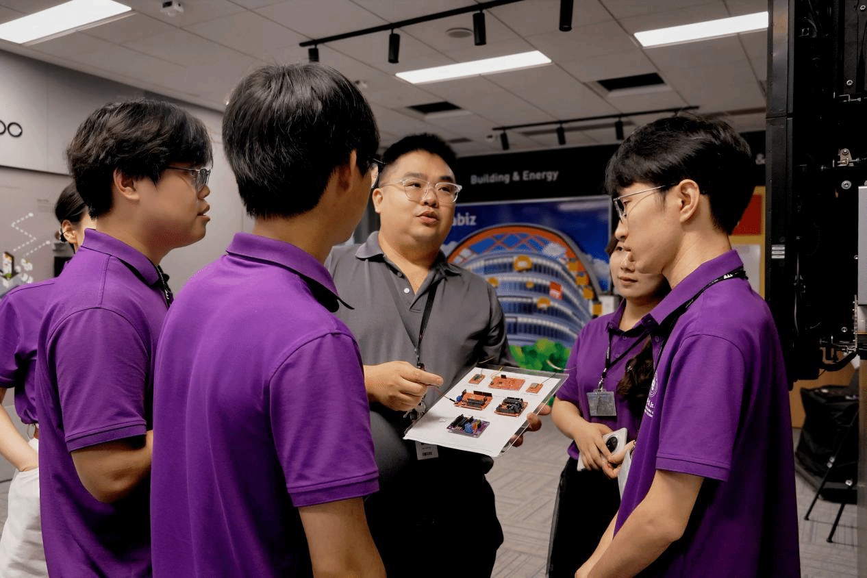 访学期间,重电学子深入感受了新加坡先进的职业教育模式。在ITE实训中心的参观学习中,AR/VR实训室内,学员们体验了虚拟仿真教学系统,这种沉浸式的学习方式让复杂的传感器、半导体原理变得直观可感。物联网实训中心里,电子资讯与通讯技术学院副院长Alex依托虚拟仿真教学平台Tinkercad,运用“AI+”项目式教学法,指导学员完成从信号采集到设备控制的闭环训练。特别值得一提的是,学员们还参观了新加坡环境保护与可持续发展展览馆,了解了新加坡在水资源循环利用、“垂直农场”等方面的创新实践。本次访学,通过“专业课程学习+社会实践调研+人文交流互鉴”的模式,使学员们更加深入且直观的了解了职业教育的前沿技术发展方向、相关产业生态的最新趋势以及创新科技的实际应用场景。