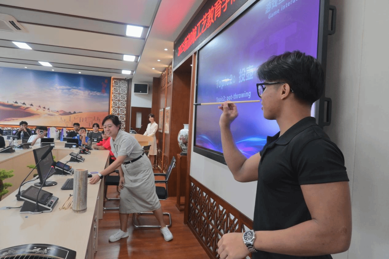 婉转悠扬的古筝演奏率先登场,演奏者指尖流转间,经典曲目徐徐展开,细腻的旋律、典雅的韵味让新加坡学生深深沉醉,直观领略到中国古典音乐的博大精深;在八段锦体验环节,学校教师通过动作拆解、分步指导,耐心讲解八段锦的养生原理与练习技巧,新加坡师生跟着节奏认真模仿,在一呼一吸、一招一式中,切身感受中华传统养生文化的智慧;投壶游戏则以趣味互动的形式,让新加坡学子在轻松愉悦的氛围中了解中华礼仪文化的起源与内涵,现场笑声不断,互动氛围十分热烈。