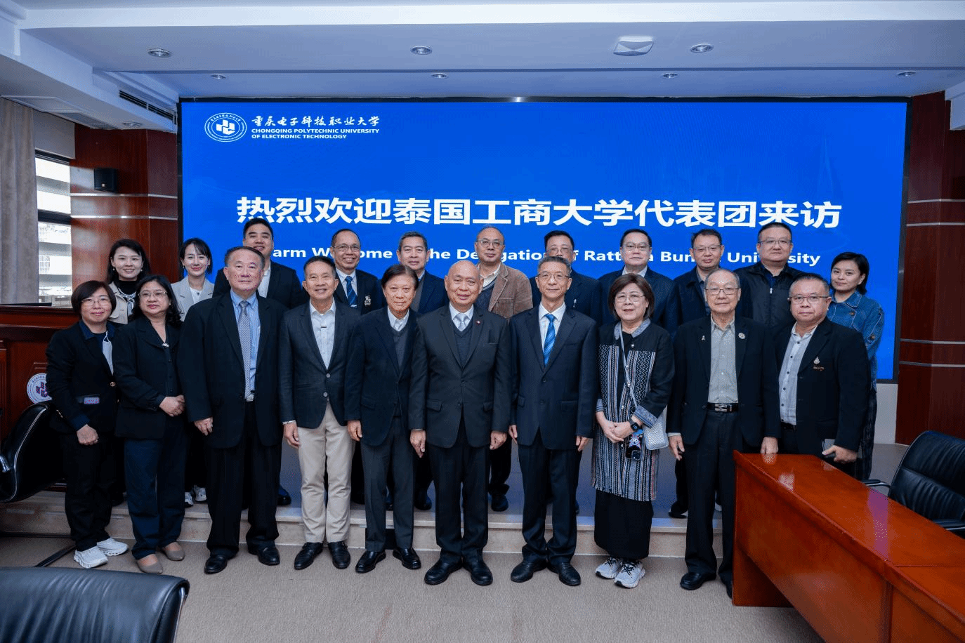 普拉威・拉塔那披安主席对重庆电子科技职业大学的热情接待与详细介绍表示感谢,并介绍了泰国工商大学的办学特色、学科优势及国际合作愿景。他表示,通过此次校园参访,深刻感受到了重庆电子科技职业大学在职业教育领域的雄厚实力与鲜明特色,尤其是在人工智能、大数据等新兴领域的教学与科研成果令人印象深刻。泰国工商大学希望与重庆电子科技职业大学建立长期稳定的合作关系,在专业建设、人才培养、科研合作等方面开展深度合作,为两校师生搭建更多交流平台,为中泰两国友好交流贡献教育力量。