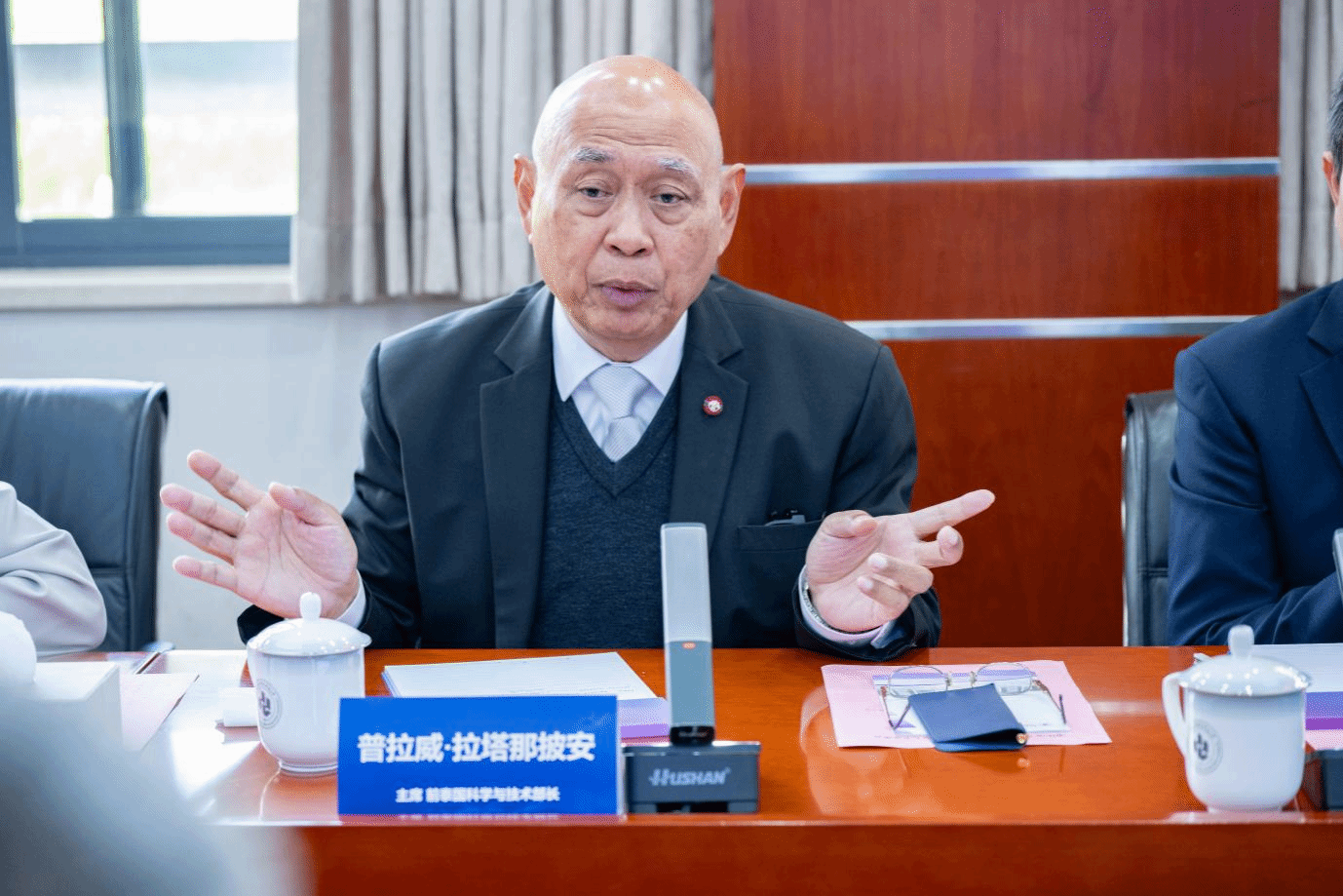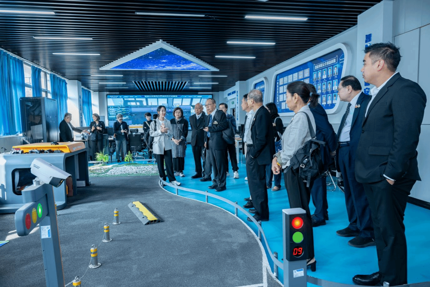 2025 年 10 月 28 日上午泰国工商大学校务委员会、泰国科学与技术部前部长普拉威・拉塔那披安主席率泰国国会前参议员威楚达·拉塔那披安理事、泰国工业部前常务秘书维通·诗玛乔迪理事、泰国文化部前常务秘书普丽莎娜·蓬塔诗里功理事等来访我校参观交流,学校党委书记张伟、党委常委、副校长幸昆仑以及党委宣传部、国际合作与交流处、人工智能与大数据学院、智能制造与汽车学院负责人参与交流座谈。