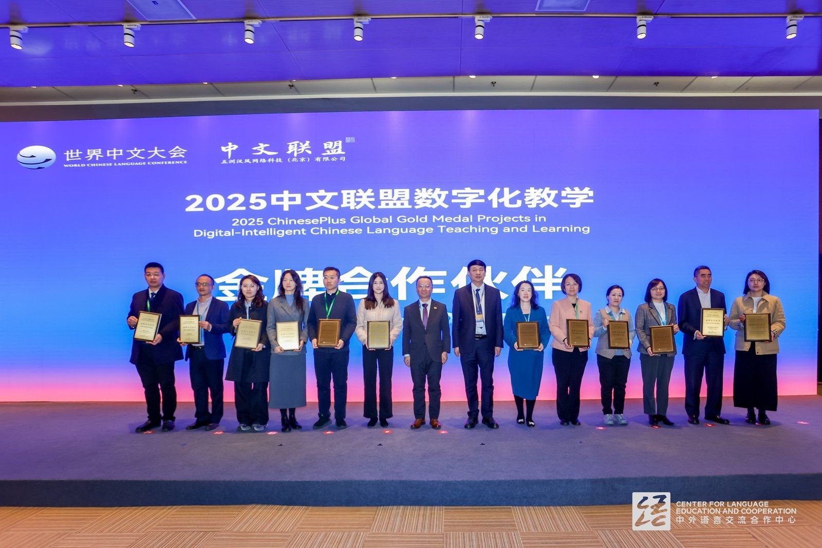 学校参与本次世界中文大会主题展并在专项会议2025全球中文联盟伙伴大会上荣获“2025中文联盟数字化教学金牌合作伙伴”和“2025中文联盟数字化教学金课”两项荣誉。