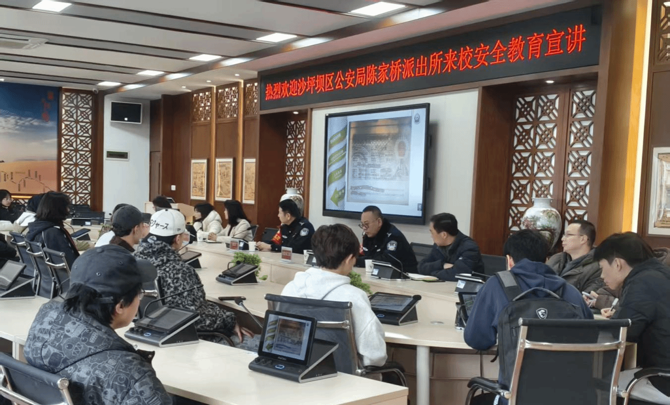 为切实增强在校留学生的安全防范意识与自我保护能力,深化“警校联动”机制,凝聚多方育人合力,共同营造安全、稳定、和谐的校园环境,国际学院近日组织召开了面向全体留学生的“安全知识”主题宣讲会。陈家桥派出所警官、国际合作与交流处、党委保卫部、党委学工部相关负责人及全体留学生参加了本次会议。