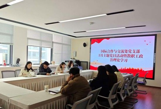 2026年1月8日,国际合作与交流处党支部在知行楼B508召开了主题党日暨教职工政治理论学习,活动由支部书记刘影主持。