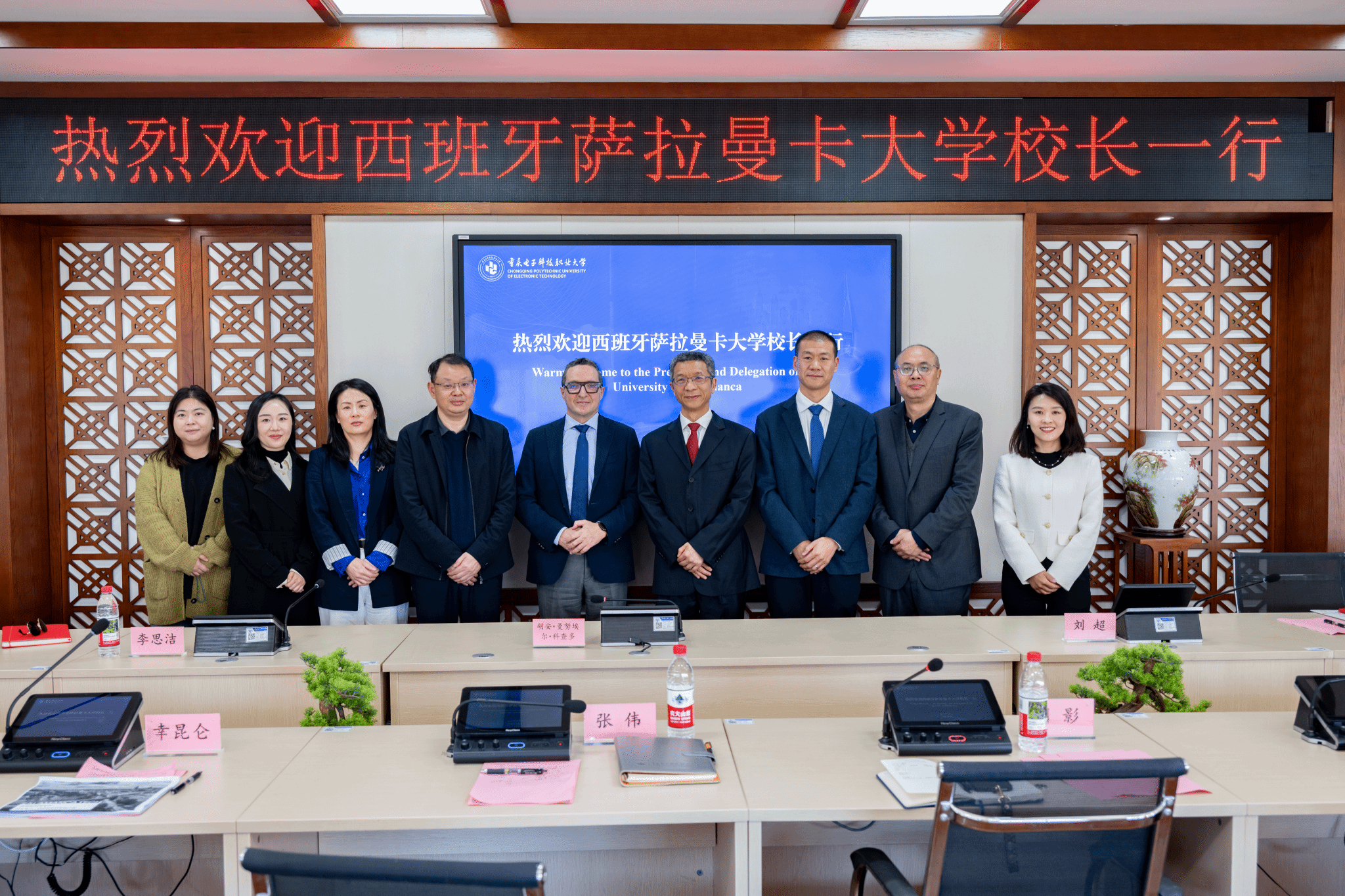会后,与会人员合影留念。此次胡安校长一行到访,为两校搭建了高效畅通的沟通桥梁,进一步夯实了合作基础、凝聚了合作共识。未来,我校将持续深化国际交流合作,以高水平对外开放推动职业教育高质量发展,不断拓宽办学视野、提升国际化办学水平,为培养兼具国际视野与专业能力的技术技能人才、推动中西职业教育交流互鉴贡献力量。