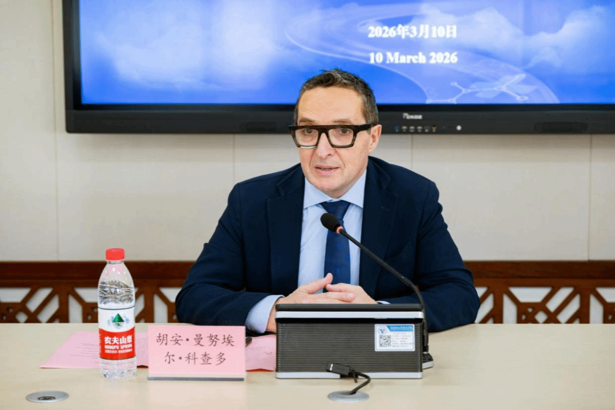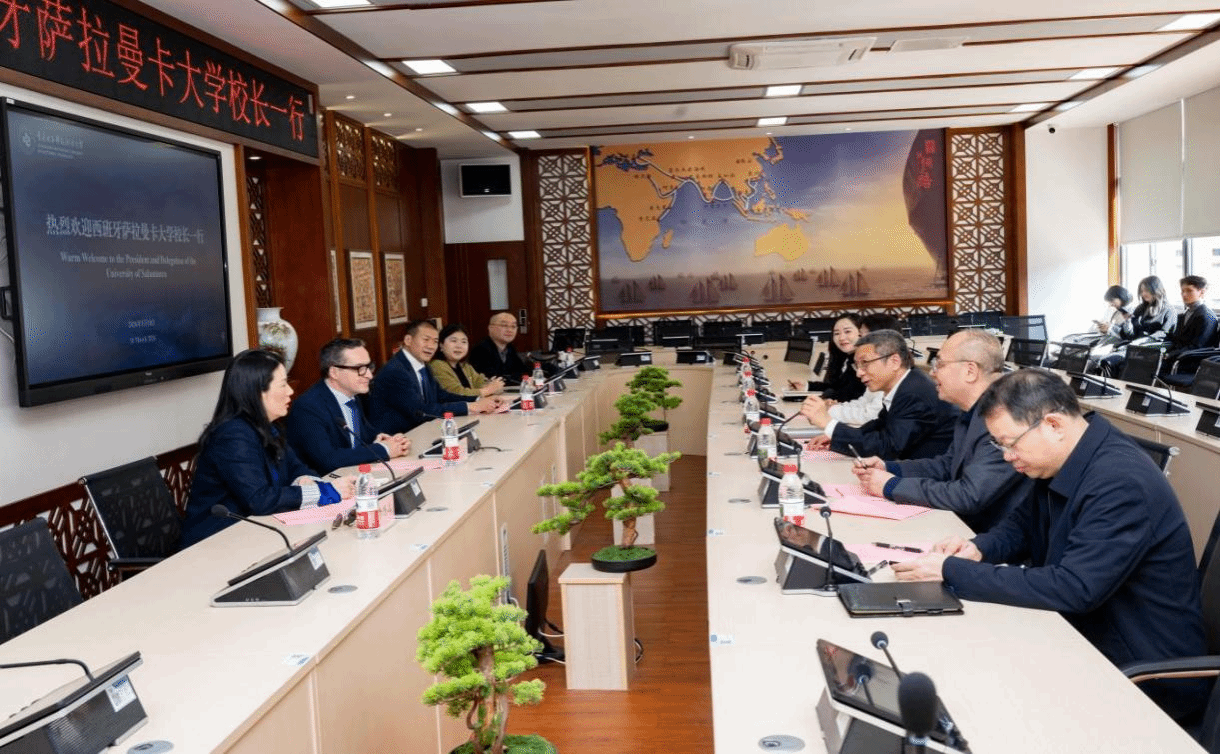 2026年3月10日下午,西班牙萨拉曼卡大学(Universidad de Salamanca)胡安・马努埃尔・科尔查多・罗德里格斯校长一行来校访问交流。学校党委书记张伟,党委常委、副校长幸昆仑,国际合作与交流处、相关二级学院负责人陪同,以实地参访为纽带、座谈交流为桥梁,共绘两校合作办学新蓝图。