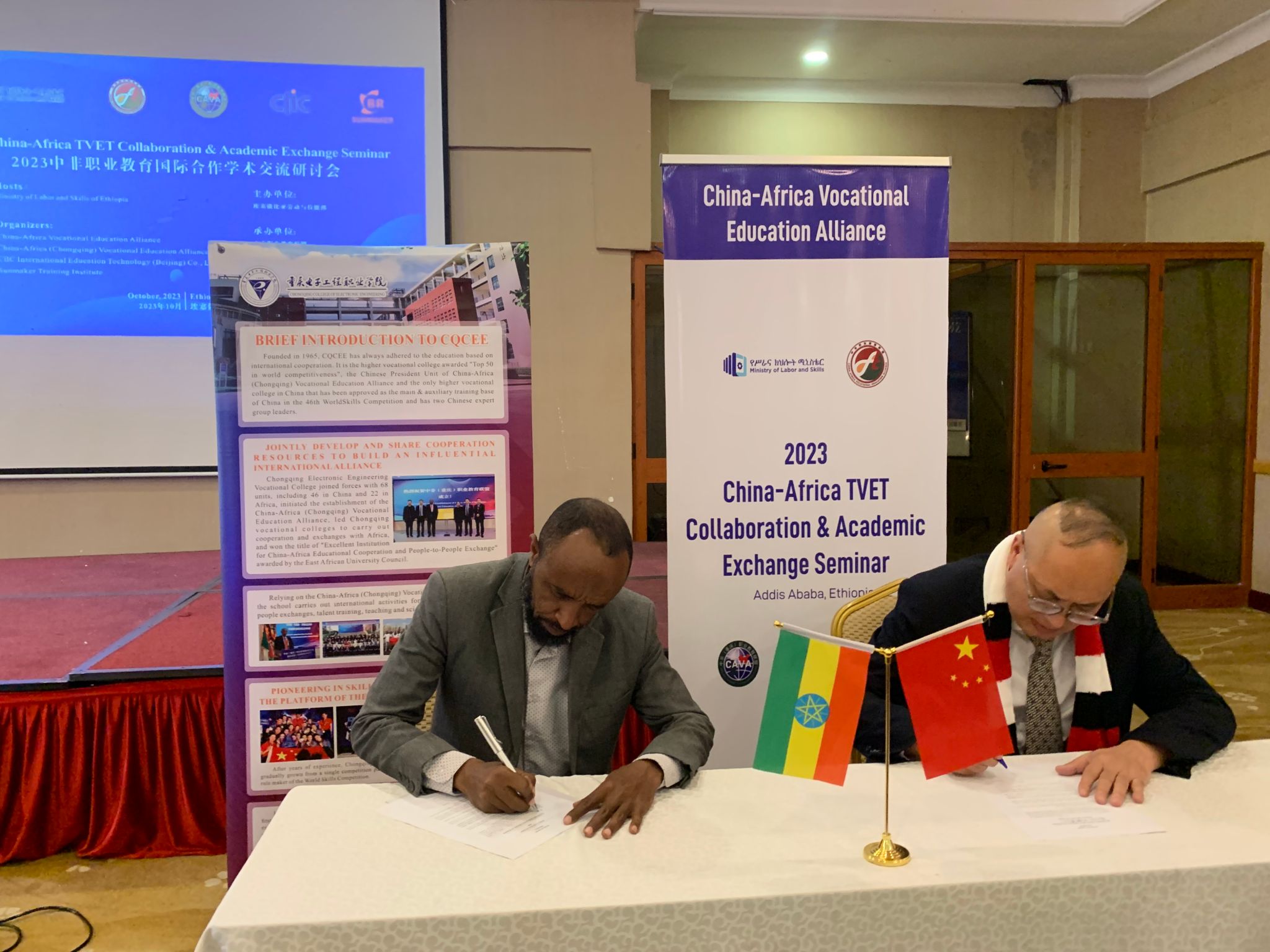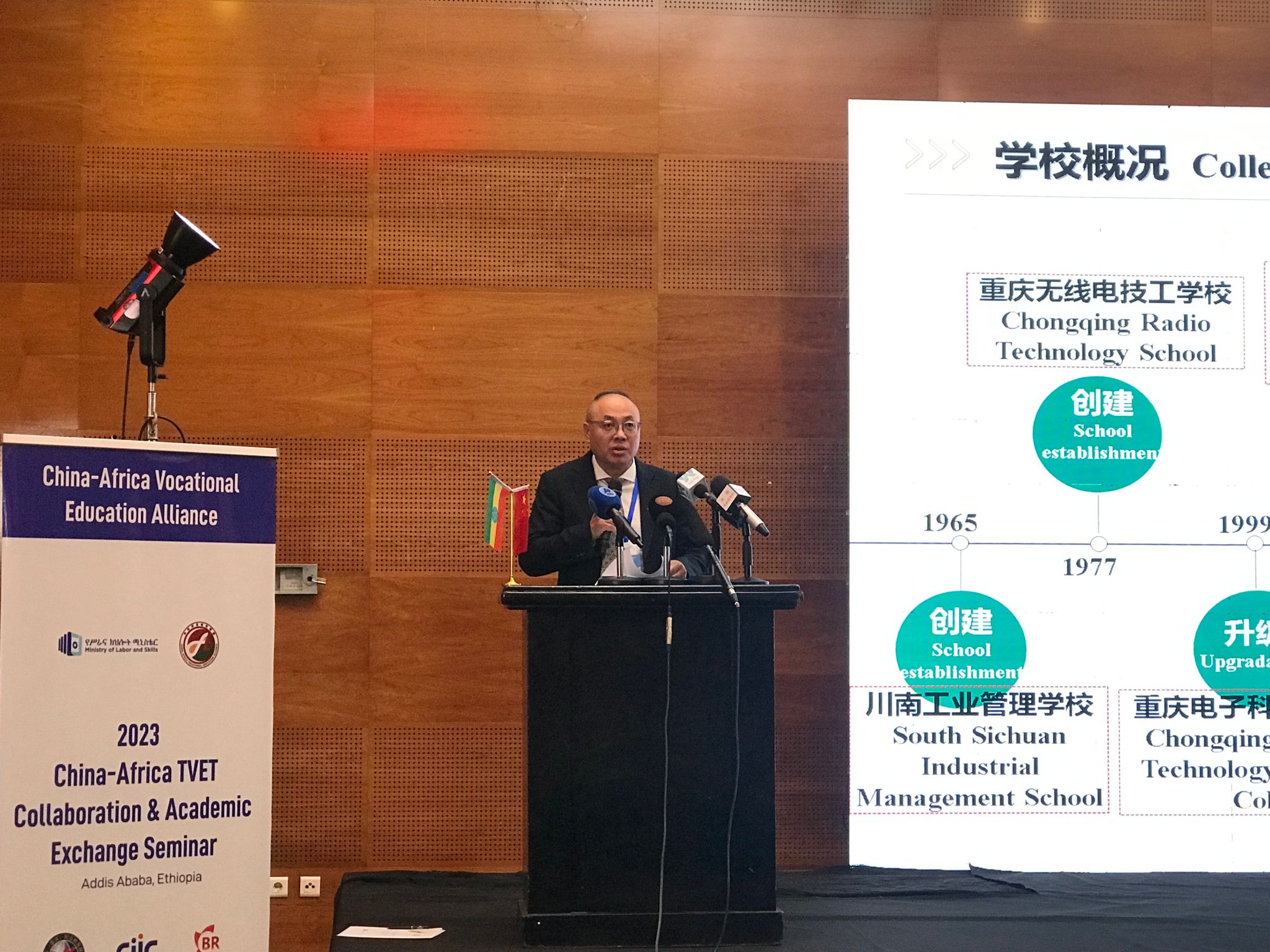 10月24日,2023中非职业教育国际合作学术交流研讨会暨中非职业教育国际合作交流项目对接会(埃塞俄比亚站)在亚的斯亚贝巴成功举办。我国相关企业、本科高校、职业院校、等多家单位与埃塞俄比亚政府高级官员、中方官员、学者、专家等共同出席会议。我校作为中非(重庆)职业教育联盟理事长单位参与大会,联盟中方秘书长、副校长幸昆仑在研讨会上分享我校职业教育发展所取得的经验。