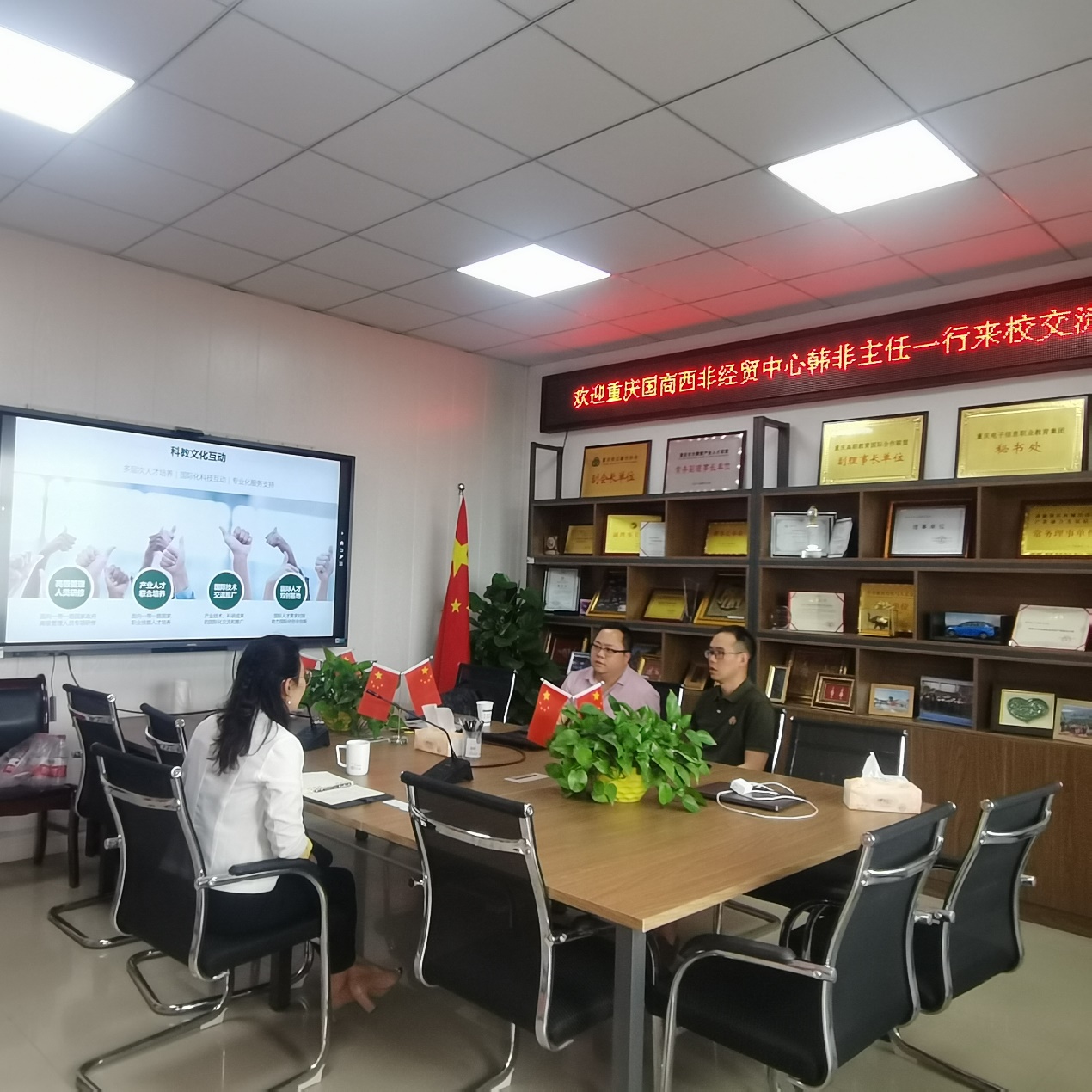 刘宏宇处长在会上提到,学校始终以人才培养质量为核心,大力支持对非合作项目,在对外合作中强调共建资源、共享经验、共谋进步,努力凝结“一带一路”教育国际化“重电经验”,服务中非职业教育高质量发展。